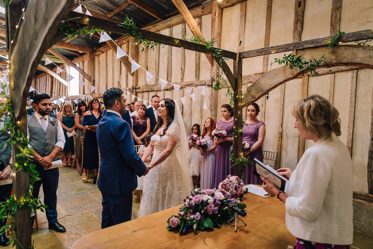 We began the day in separate hotels meeting at the barns for our first ceremony, the English Civil Ceremony. This was the first time we saw each other in our full wedding outfits and there we made our legal commitment to one another in front of the county registrar.
