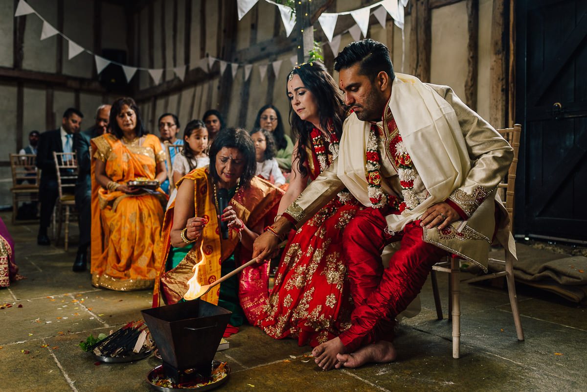 The wedding barn was shifted around whilst we changed and together we walked in together to begin our spiritual ceremony with our Hindu priest.
