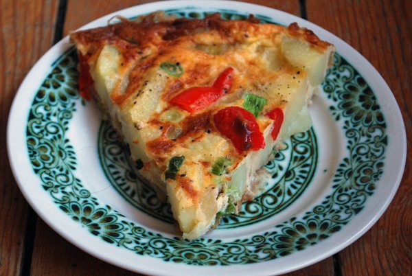 spanish tortillaSpanish Tortilla makes an excellent picnic or lunch item so get one whipped up today. They taste best cold in my opinion but last night I ate a warm slice with a large dollop of garlic mayonnaise. It was delicious.spanish tortillaspanish tortilla