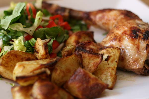 This might be the simplest recipe I have ever blogged about. In fact it is so simple it’s almost a non-recipe. But these spicy potato wedges are so damn fine that I just had to share them. Quick and easy, these potato wedges are an ideal mid-week supper side dish and as you can see I served mine up roast chicken legs and salad. But they would also be great for sprucing up your Sunday lunch!